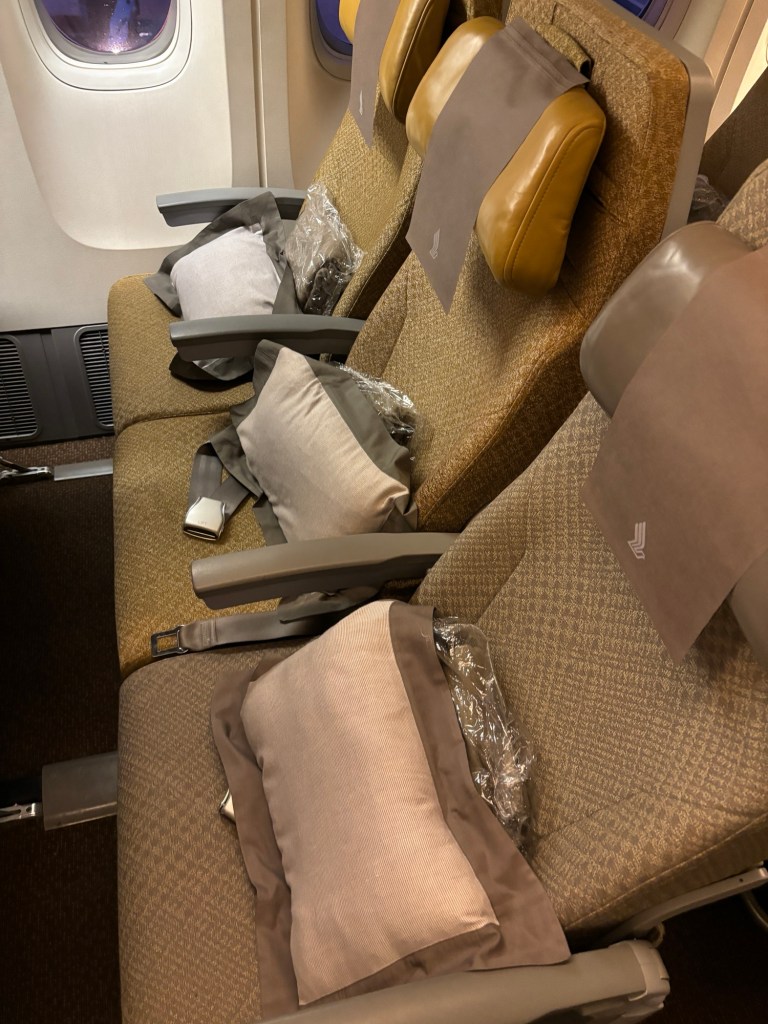 I am sitting in aisle seat 59H on this Singapore Airways B777-300ER aircraft bound for Sydney from Singapore. I am traveling with my partner and we have 3 seats together for the two of us giving us a bit more space and comfort for this just under 7-hour flight.