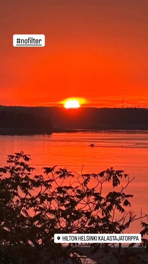 Despite its unpronounceable name, this Hilton is located approximately 25 minutes by tram or bus from Helsinki city center. Its location is on the lake and offers two wings one of which has a sauna, indoor swimming pool, and stunning views of the lake. I was lucky enough to view the sunset which was absolutely spectacular and on par with many sunsets I’ve seen on faraway Islands.