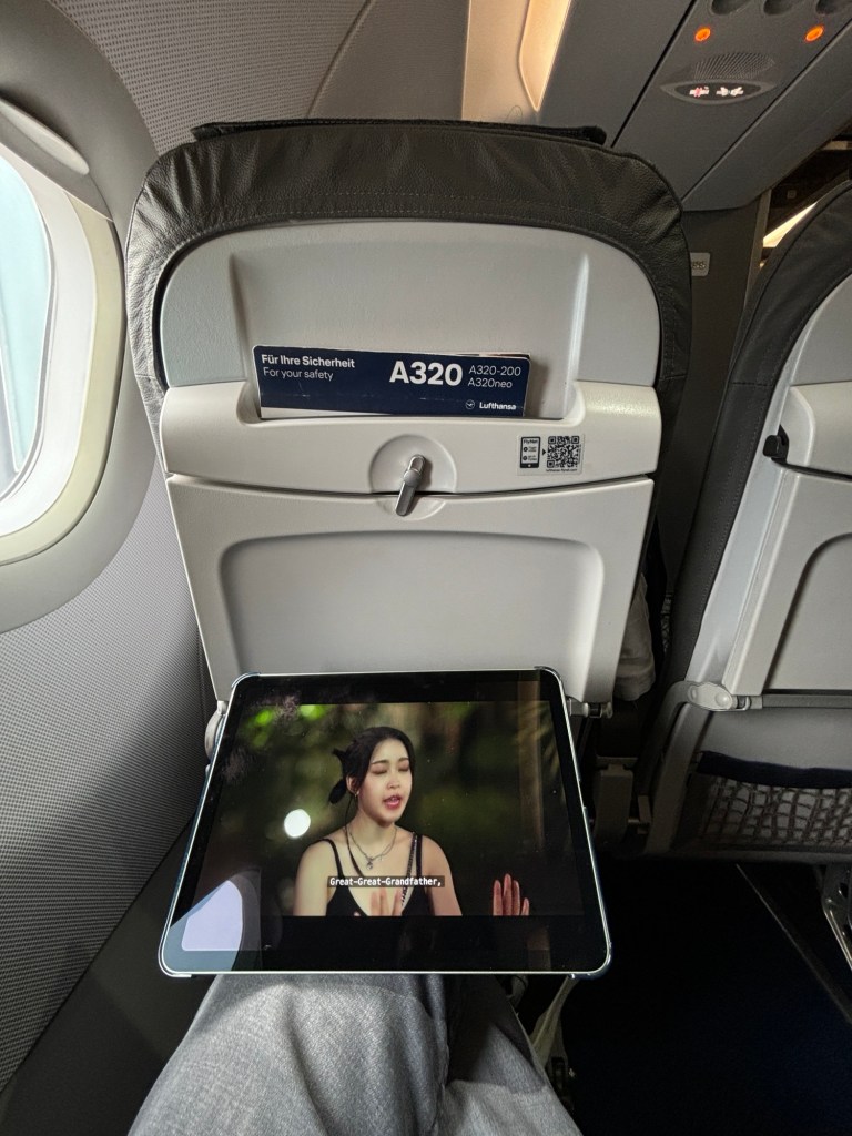 I watch a part of an episode of a new Thai drama I have started watching during this short flight. we also get a chocolate at the end.