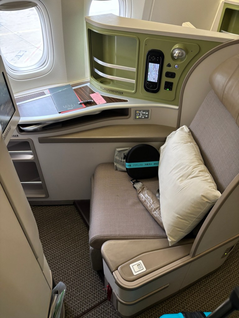 I am sitting in Business class seat 5K, on this EVA air Boeing B777-300ER flight from Paris to Taipei.