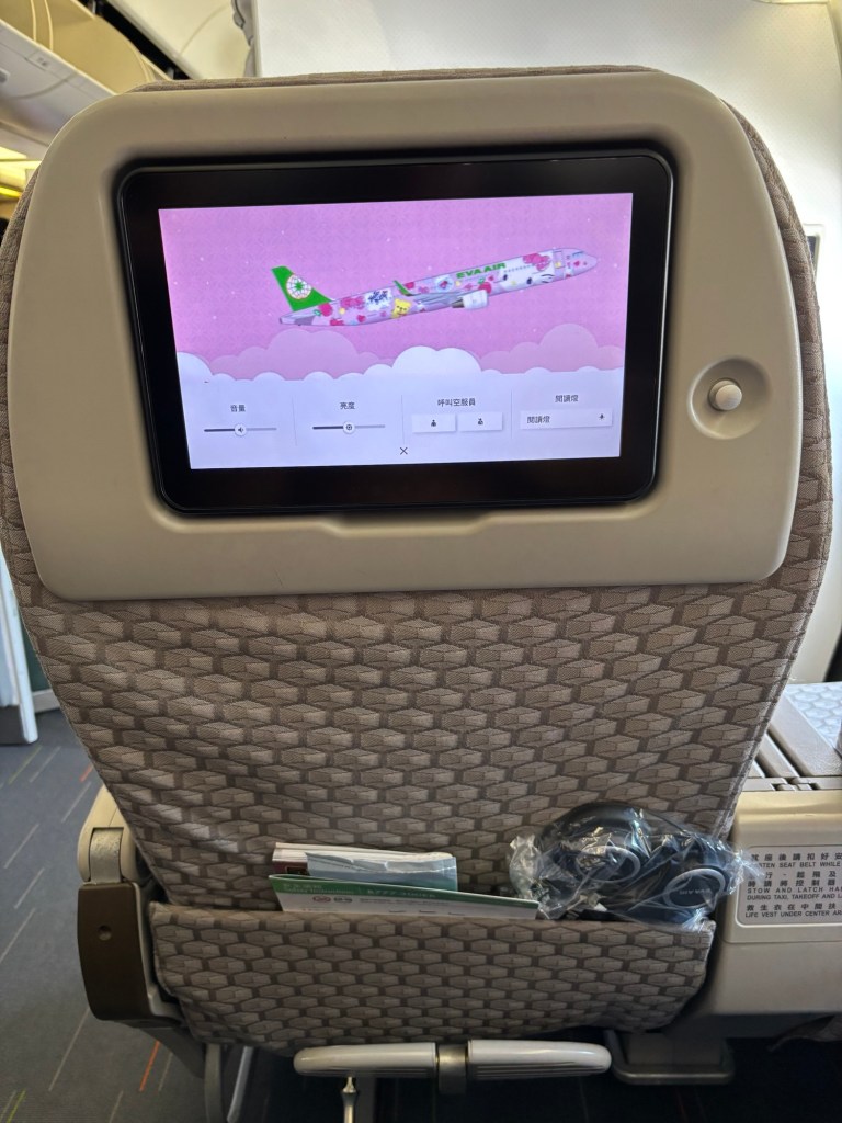 I am sitting in seat 21H, an aisle seat in Premium Economy (whilst my partner sits in Business Class 🤨) on this EVA Airways B777-300ER flight bound for Taipei from Bangkok.