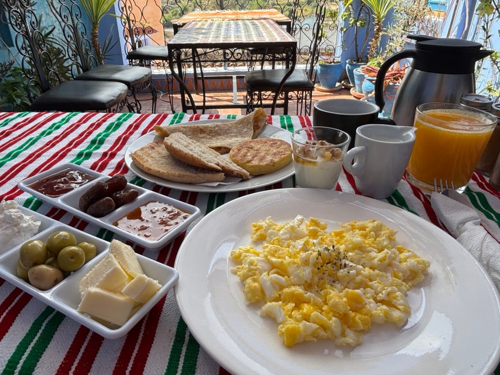 Breakfast (mainly flatbreads and jam, dates, and juice) is included in the rate and I have it on the terrace. Actually I only eat half of it and have the rest for a late lunch. On the 2nd morning I leave early and a very simple packed lunch is provided.