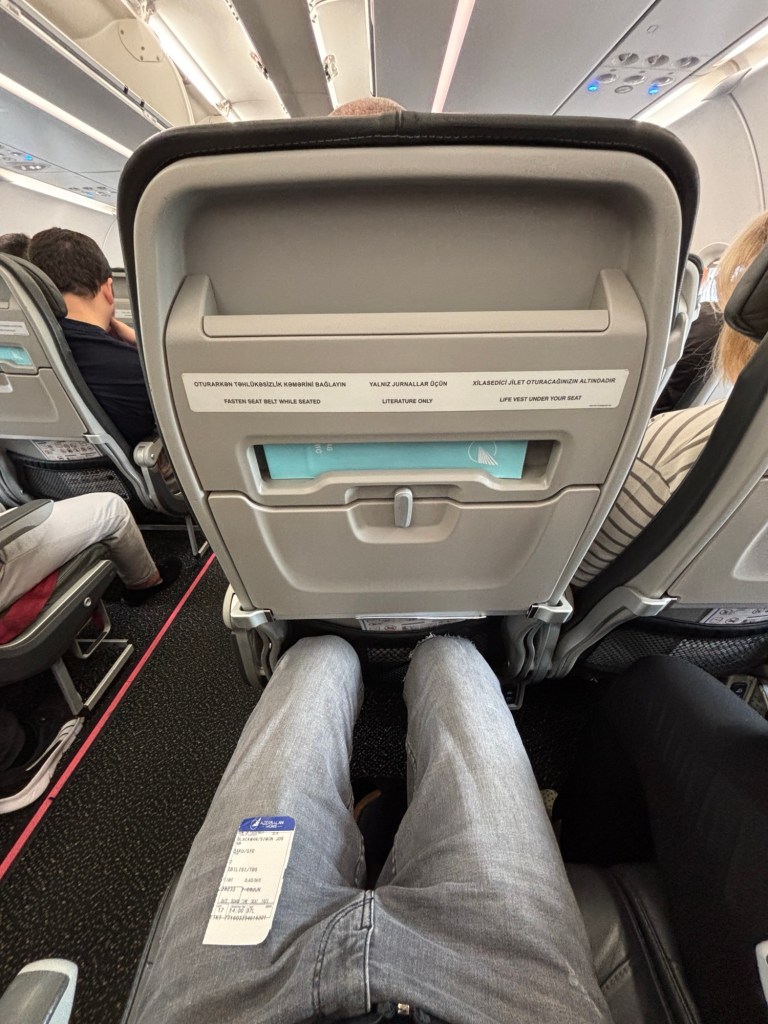 I am sitting in seat 37L in the A320 Neo Azerbaijan Airlines flight from Baku to Tbilisi. It is the same aircraft (I think) as the one I flew into Baku. Again there are no AV screens, a narrow seat pitch, and the cabin is quite full.