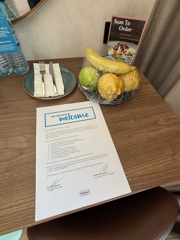 We are warmly greeted at check-in, thanked for being Hhonors Gold members (downgraded from Diamond after 10 years) and given our key to our upgraded room on the 14th of 15 floors.