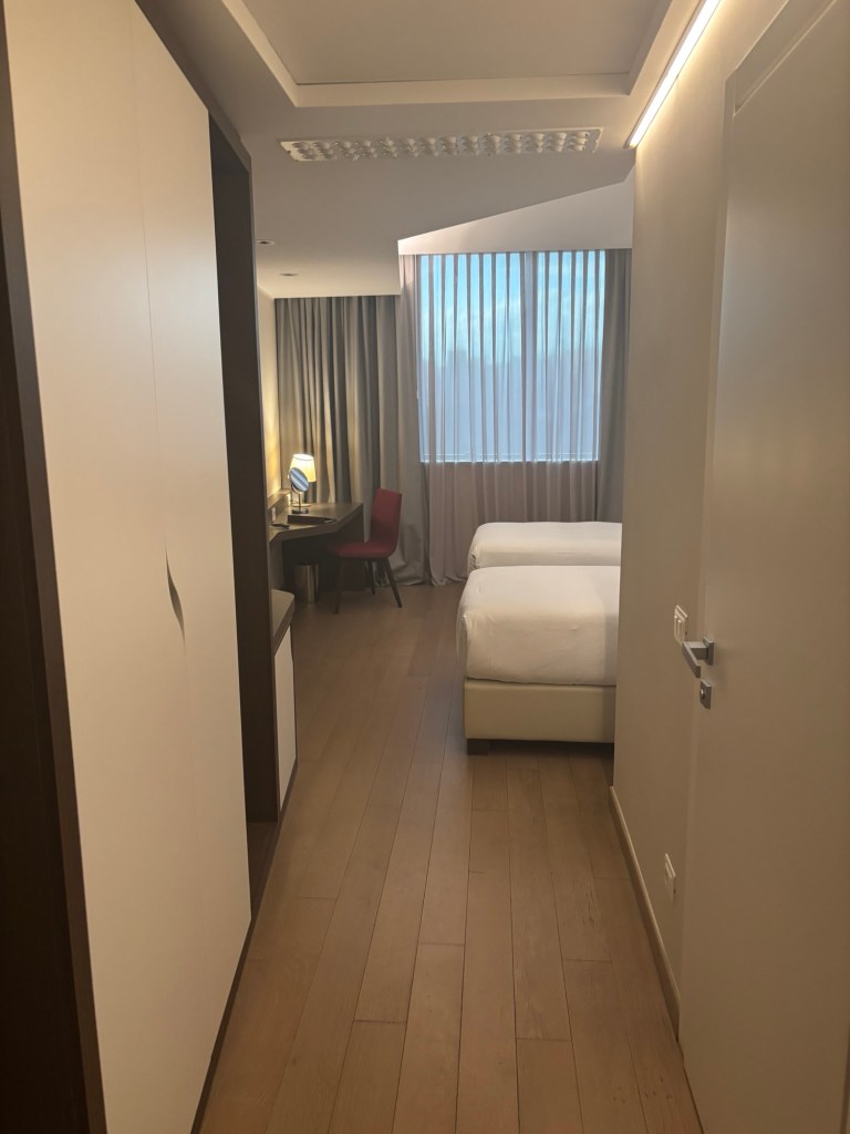 The room itself is ok, a twin room as I’m travelling with a friend. The view is of a large construction site hole but it’s pretty in the distance.