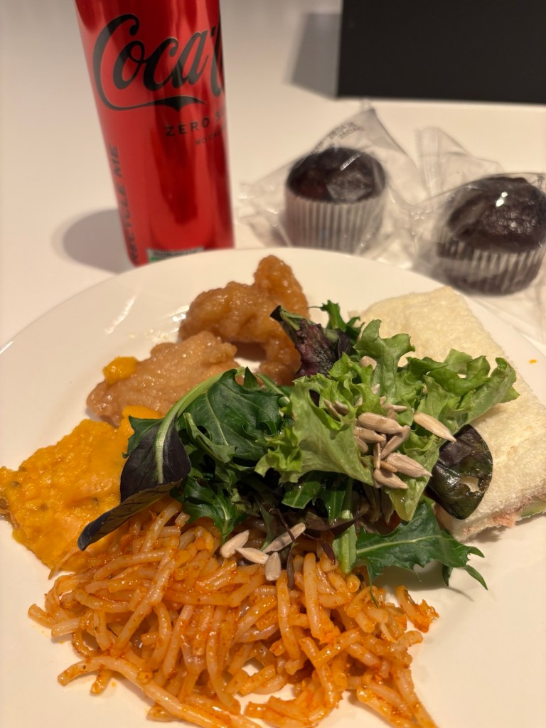It is empty when I enter and I find a stool seat near the buffet counter, and grab a few hot and cold items on display.