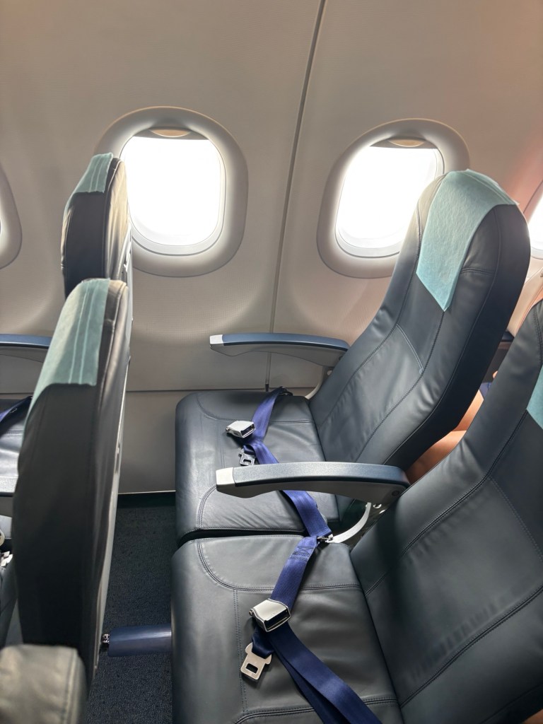 The flight is only 45 mins thankfully and we are offer water an a small packet of cheesecake cookie buttons.