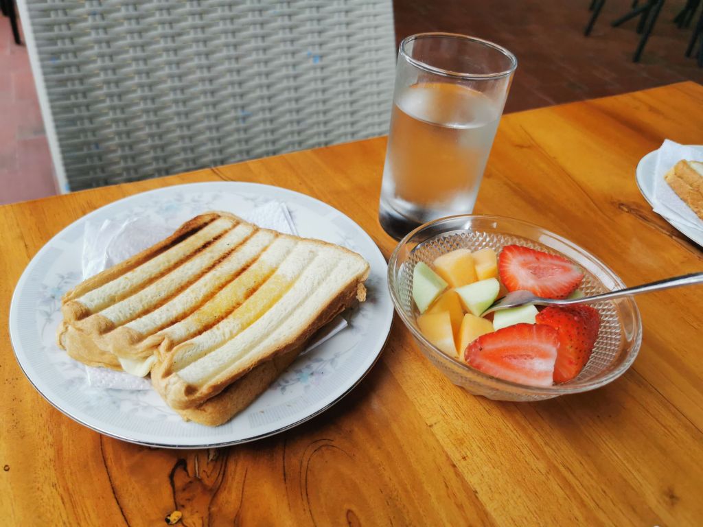 Breakfast is super simple. Haloumi toast and tea/coffee, and fruit, which is perfect for me as I’ve had an upset stomach for a couple of days now.