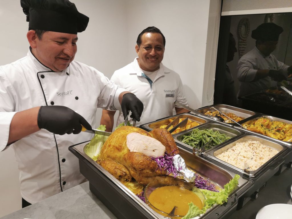 Each meal is an absolute treat. My fellow passengers are always waiting in anticipation as to what the next meal will be – from Ecuadorian buffets, to grill nights, BBQs on the outdoor deck, a whole roast turkey, and so much more – absolutely delicious.