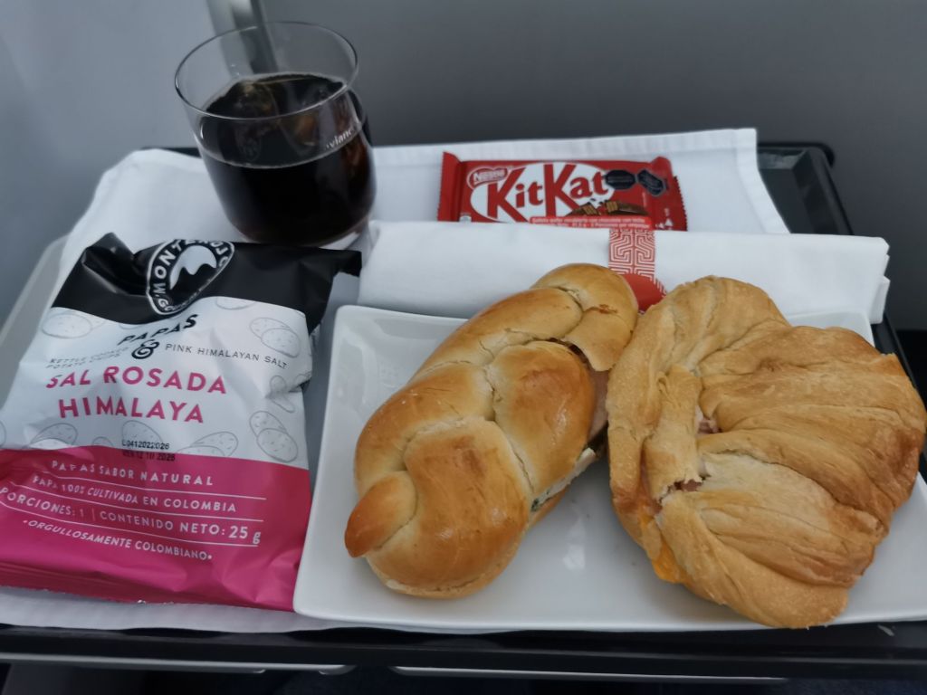 The entertainment system is via Avianca WiFi connected to your device. Only old stuff. I watch a music doco on Lizzo and start ‘Max’ about a war dog but my earphones run out of juice so that’s that.