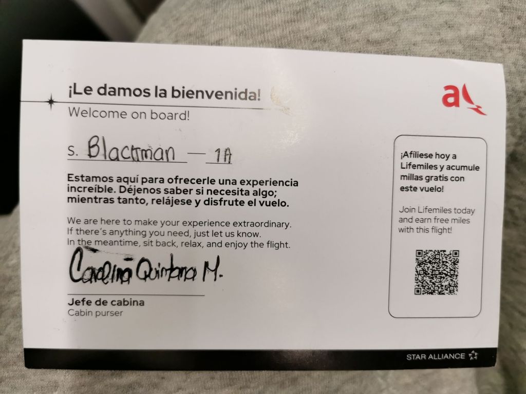 I get the same card for the 5th time welcoming me on board and reminding me how extraordinary this flight is going to be. Yeah, right.