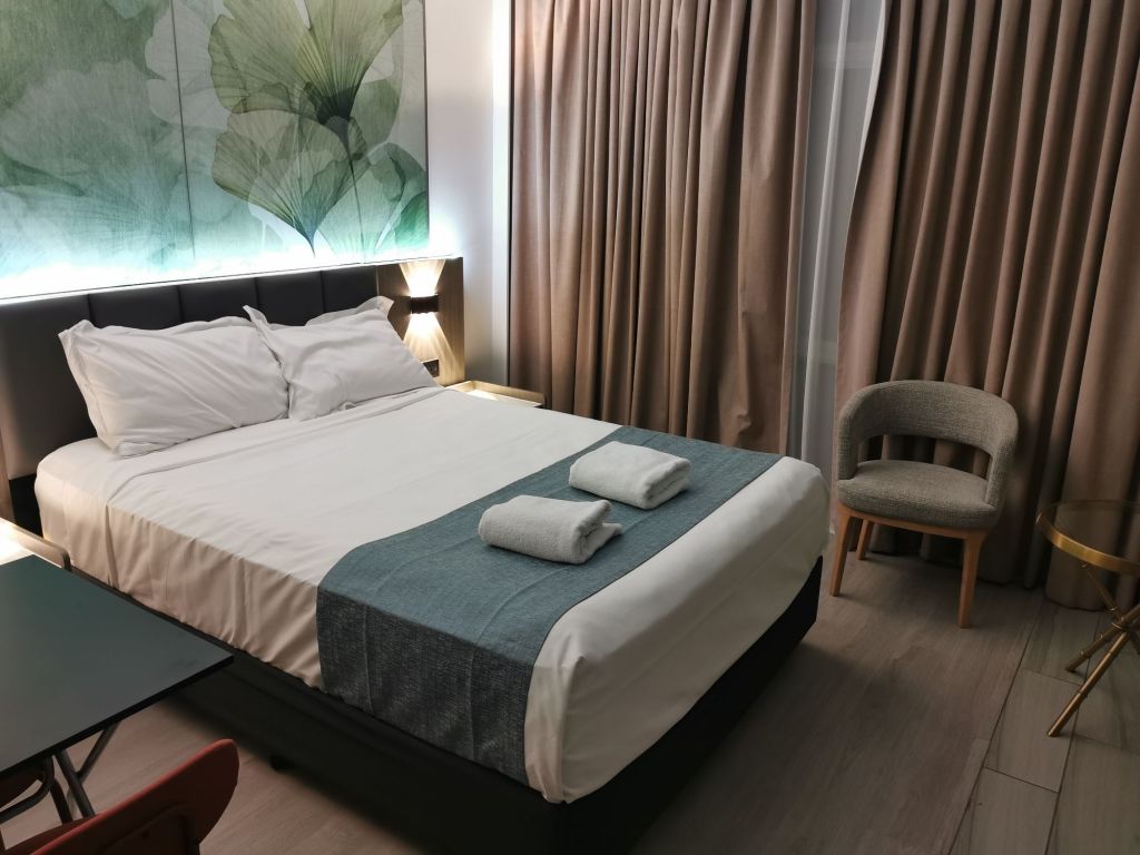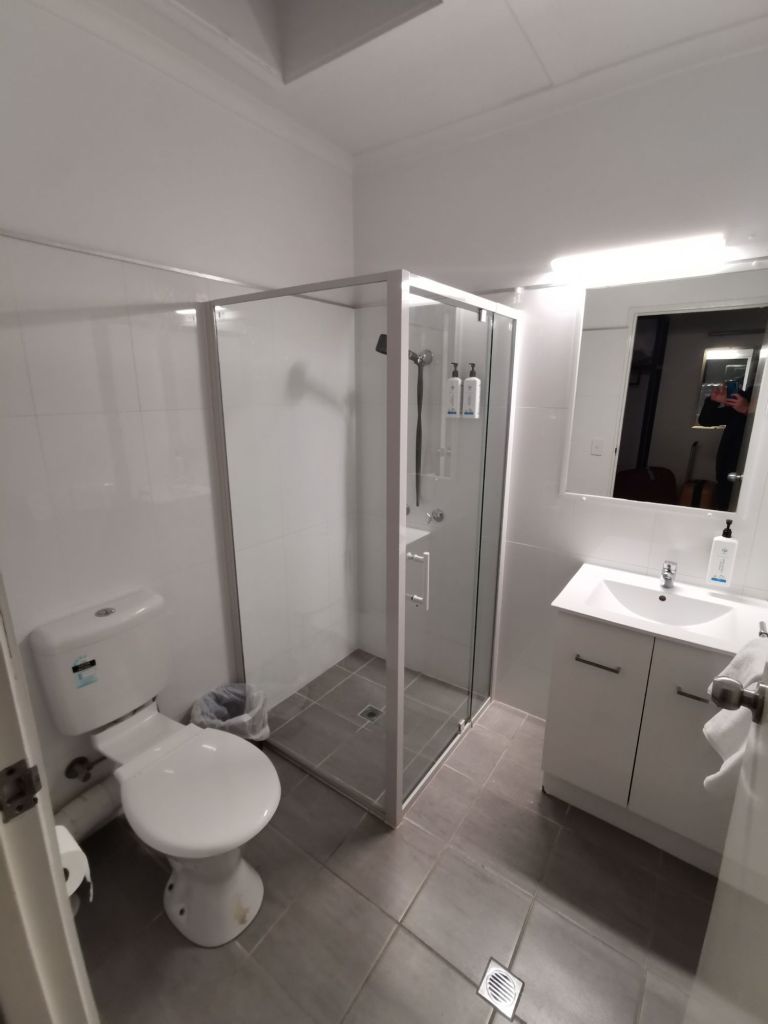 Simple no frills room with a double bed, lots of connections for our devices, TV with Netflix etc, and a bathroom with no bath.