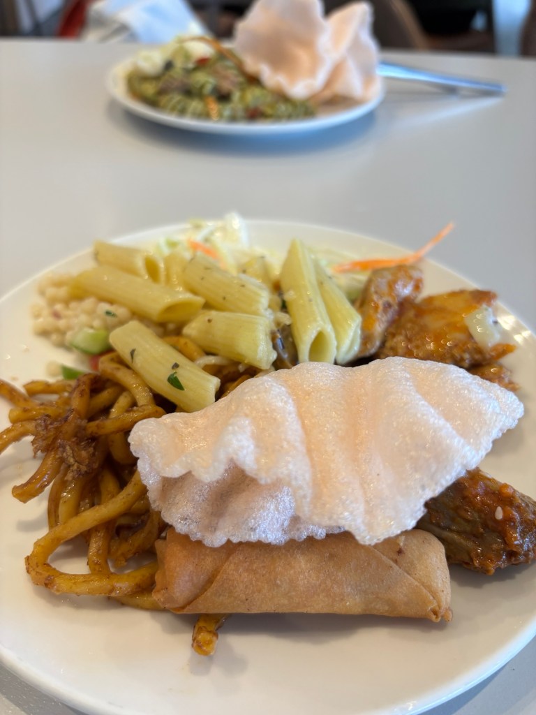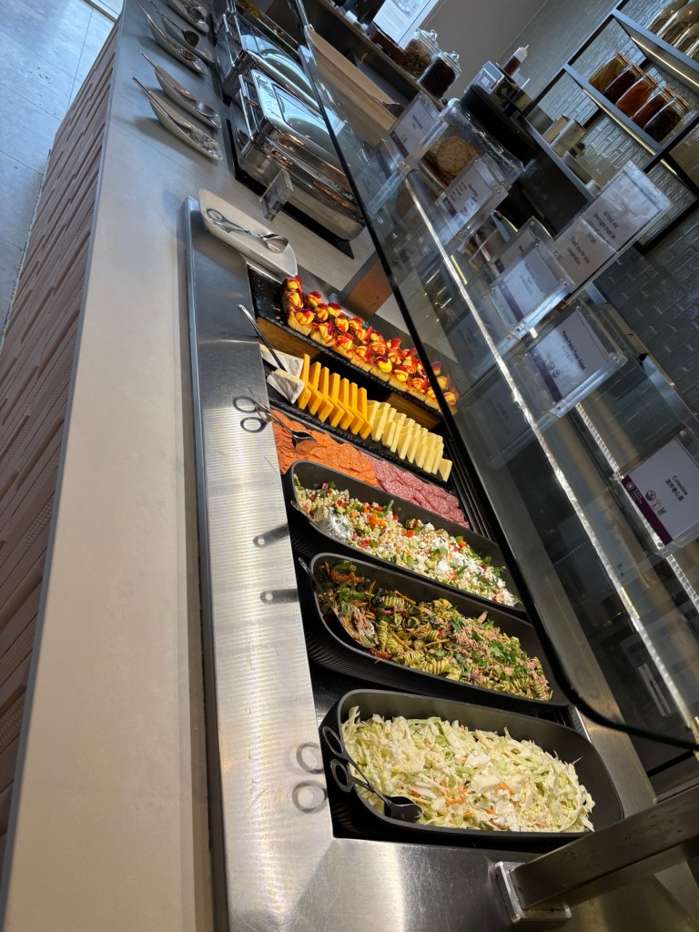 As soon as I am in I make my way to the buffet and get some hot and cold items. All are excellent. I also order a barista-made Dirty Chai Latte. It’s good, although a little sweet.